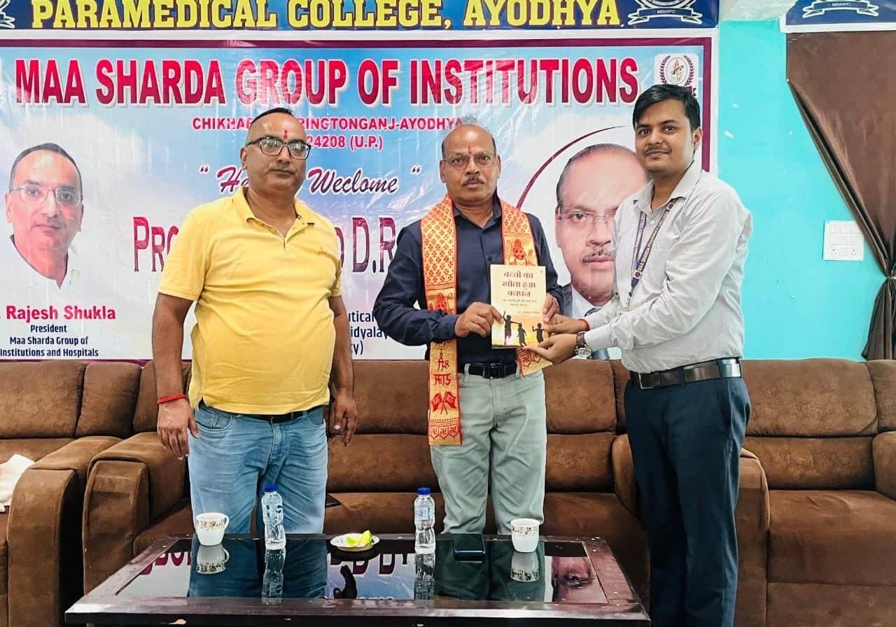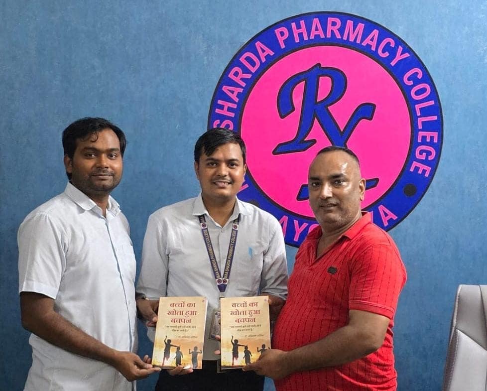 рдорд╛рдБ рд╢рд╛рд░рджрд╛ рдЧреНрд░реБрдк рдСрдл рдЗрдВрд╕реНрдЯреАрдЯреНрдпреВрд╢рдВрд╕ рдХреЗ рдирд┐рджреЗрд╢рдХ рдбреЙ. рд░рд╛рдЬреЗрд╢ рд╢реБрдХреНрд▓рд╛ рд╕рд░ рдФрд░ рдорд╛рдБ рд╢рд╛рд░рджрд╛ рдлрд╛рд░реНрдореЗрд╕реА рдХреЙрд▓реЗрдЬ рдЕрдпреЛрдзреНрдпрд╛ рдХреЗ рд╡рд┐рднрд╛рдЧрд╛рдзреНрдпрдХреНрд╖ рдбреЙ. рдЬрд┐рддреЗрдВрджреНрд░ рдХреБрдорд╛рд░ рд╕рд░ рдХреЛ, рдбреЙ. рдЕрд╡рд┐рдирд╛рд╢ рдЬреЛрд░рд┐рдпрд╛ рджреНрд╡рд╛рд░рд╛ рд▓рд┐рдЦрд┐рдд рдкреБрд╕реНрддрдХ “рдмрдЪреНрдЪреЛрдВ рдХрд╛ рдЦреЛрддрд╛ рд╣реБрдЖ рдмрдЪрдкрди” рдХреА рдкрд╣рд▓реА рдкреНрд░рддрд┐ рднреЗрдВрдЯ рдХреА рдЧрдИред